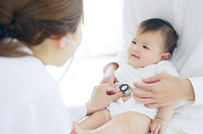 赤ちゃんの成長と発達、栄養状態、先天性疾患などの病気がないかを診ます。